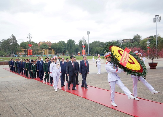 Đoàn đại biểu Đảng, Nhà nước do Tổng Bí thư Tô Lâm làm Trưởng đoàn vào Lăng viếng Chủ tịch Hồ Chí Minh. Ảnh: Viết Thành
