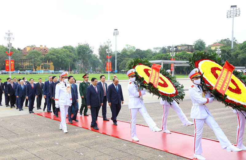 Sáng 27/4/2022, Đoàn đại biểu Ban Chấp hành Trung ương Đảng, Chủ tịch nước, Quốc hội, Chính phủ, Ủy ban Trung ương Mặt trận Tổ quốc Việt Nam cùng đại diện các bộ, ngành trung ương và thành phố Hà Nội đã đặt hoa, vào Lăng viếng Chủ tịch Hồ Chí Minh.