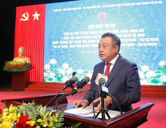 Thay mặt lãnh đạo thành phố phát biểu tri ân các vị tướng lĩnh, cán bộ cấp cao quân đội, Phó Bí thư Thành ủy, Chủ tịch UBND thành phố Hà Nội Trần Sỹ Thanh gửi lời chúc tốt đẹp nhất tới các đại biểu tham gia cuộc gặp mặt.