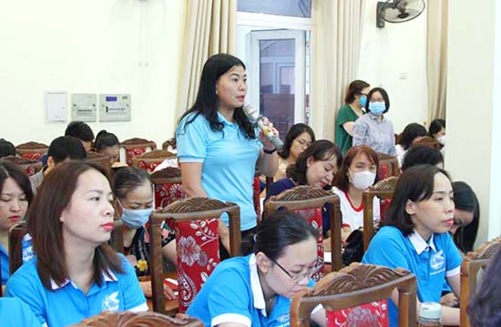 Đại diện Hội phụ nữ quận phát biểu ý kiến tại hội nghị đối thoại