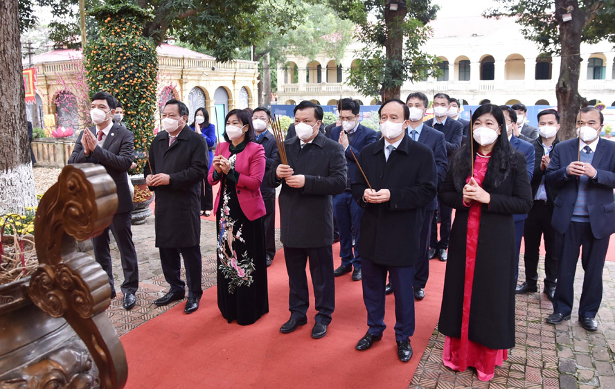Trong không khí linh thiêng, trời đất giao hòa, mừng Đảng, mừng xuân mới Nhâm Dần 2022, thay mặt Đảng bộ, Chính quyền và Nhân dân thành phố, đồng chí Đinh Tiến Dũng đã cẩn cáo trước anh linh các vị liệt tổ, liệt tông về những kết quả toàn diện, tích cực của thành phố trong năm 2021 - một năm nhiều khó khăn do đại dịch Covid-19; phương hướng, nhiệm vụ phát triển trong năm 2022 tiếp tục với chủ đề “Kỷ cương, trách nhiệm, hành động, sáng tạo, phát triển”, quyết tâm thực hiện thắng lợi các mục tiêu, chỉ tiêu, nhiệm vụ đã đề ra.