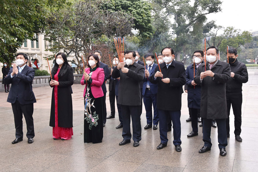 Trước anh linh Chủ tịch Hồ Chí Minh kính yêu, các đồng chí lãnh đạo Thành phố đã kính cáo về những kết quả toàn diện mà Đảng bộ, chính quyền, nhân dân Thủ đô đã đạt được trong năm 2021; những phương hướng, mục tiêu, nhiệm vụ trọng tâm với quyết tâm và ý chí cao nhất trong năm có ý nghĩa bản lề 2022.