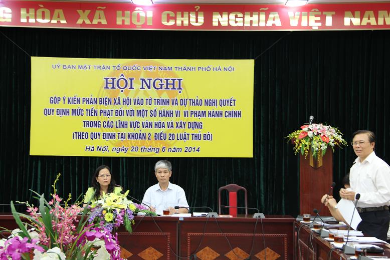 Ban Thường trực UB MTTQ TP chủ trì tổ chức Hội nghị phản biện xã hội về quy định mức phạt đối với hành vi vi phạm trong lĩnh vực văn hóa và xây dựng nhằm cụ thể hóa Luật Thủ đô để chuẩn bị Kỳ họp thứ 10 HĐND TP