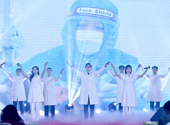 Tiết mục nghệ thuật chào mừng lễ kỷ niệm, ca ngợi những đóng góp, hy sinh thầm lặng của người thầy thuốc. Ảnh: Viết Thành