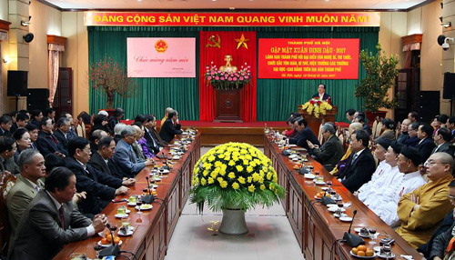 Chiều 15-1, trong không khí phấn khởi đón mừng Tết cổ truyền dân tộc Đinh Dậu 2017, TP Hà Nội tổ chức buổi gặp mặt đại biểu trí thức, văn nghệ sĩ, lãnh đạo các trường đại học, cao đẳng và các vị chức sắc tôn giáo tiêu biểu Thủ đô.