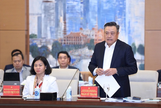 Chủ tịch UBND thành phố Hà Nội Trần Sỹ Thanh phát biểu tại phần thảo luận.