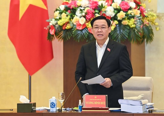 Chủ tịch Quốc hội Vương Đình Huệ phát biểu chỉ đạo tại cuộc làm việc.