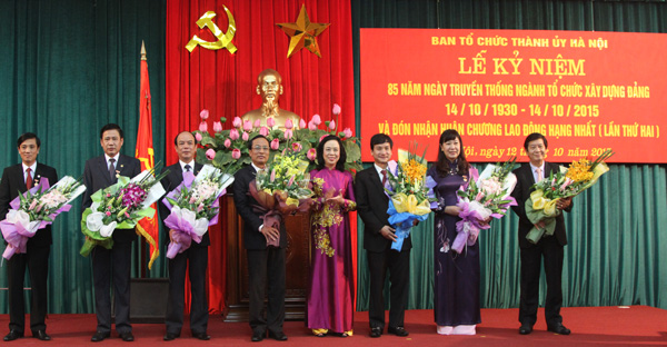 Ngày 12-10, Ban Tổ chức Thành ủy Hà Nội tổ chức kỷ niệm 85 năm Ngày truyền thống ngành Tổ chức xây dựng Đảng (14/10/1930 - 14/10/2015). Tại buổi lễ, Ủy viên Bộ Chính trị, Bí thư Thành ủy Phạm Quang Nghị; Phó Bí thư Thường trực Thành ủy Ngô Thị Thanh Hằng; các đồng chí Ủy viên Ban Thường vụ Thành ủy, Thành ủy viên; các đồng chí nguyên lãnh đạo Thường trực Thành ủy, Ban Tổ chức Thành ủy đã tới dự. Với những thành tích xuất sắc trong giai đoạn 2010-2014, Ban Tổ chức Thành ủy Hà Nội vinh dự được Chủ tịch nước ký quyết định trao tặng Huân chương Lao động hạng Nhất. Đây là lần thứ hai Ban Tổ chức Thành ủy được trao tặng vinh dự này. Tại lễ kỷ niệm, thay mặt lãnh đạo Đảng, Nhà nước, Ủy viên Bộ Chính trị, Bí thư Thành ủy Phạm Quang Nghị đã gắn Huân chương Lao động lên lá cờ truyền thống của ngành Tổ chức xây dựng Đảng thành phố và trao bằng chứng nhận cho lãnh đạo Ban Tổ chức Thành ủy.
