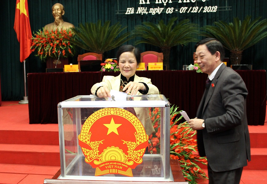 Các đại biểu HĐND bỏ phiếu bầu bổ sung ông Nguyễn Đức Chung, Giám đốc Công an Thành phố làm Ủy viên UBND