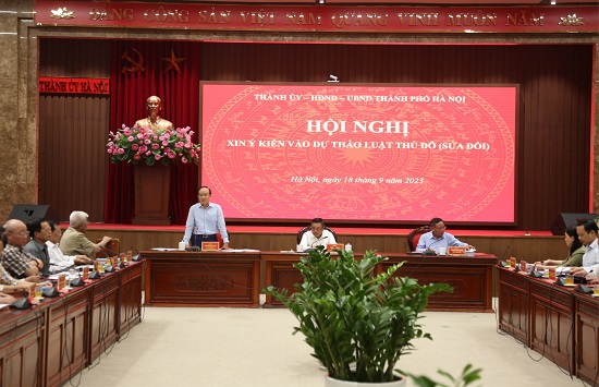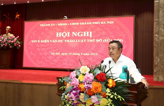 Phát biểu mở đầu hội nghị, Chủ tịch UBND thành phố Trần Sỹ Thanh cho biết, thực hiện nhiệm vụ đề xuất xây dựng Luật Thủ đô (sửa đổi) theo Nghị quyết Đại hội lần thứ XVII Đảng bộ thành phố, từ năm 2021, Hà Nội đã tiến hành việc tổng kết thi hành Luật Thủ đô năm 2012 và đề xuất chính sách xây dựng Luật Thủ đô (sửa đổi). Thành ủy đã thành lập Ban Chỉ đạo; UBND thành phố đã thành lập Tổ công tác xây dựng Luật Thủ đô (sửa đổi) để lãnh đạo, chỉ đạo và triển khai nhiệm vụ tổng kết thi hành Luật và xây dựng hồ sơ dự thảo Luật Thủ đô (sửa đổi). Hồ sơ dự án Luật Thủ đô (sửa đổi) sẽ được Chính phủ trình Quốc hội để cho ý kiến tại kỳ họp thứ sáu (tháng 10-2023) và dự kiến trình Quốc hội xem xét, thông qua tại kỳ họp thứ bảy (đầu năm 2024). Theo đó, dự thảo Luật lần này gồm 7 chương, 59 điều, tăng 3 chương, 32 điều so với Luật Thủ đô 2012.