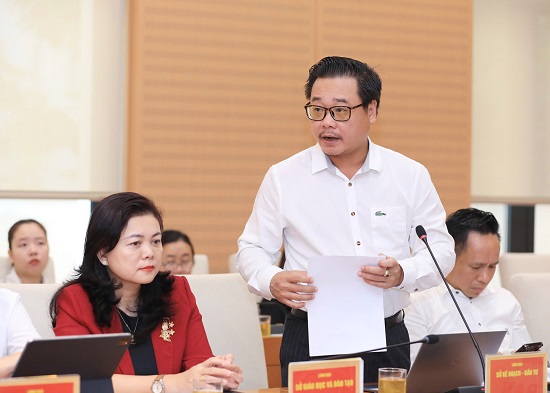 Trưởng ban Văn hóa-Xã hội HĐND Thành phố Nguyễn Thanh Bình thảo luận tại hội nghị