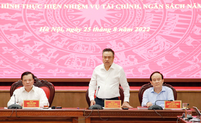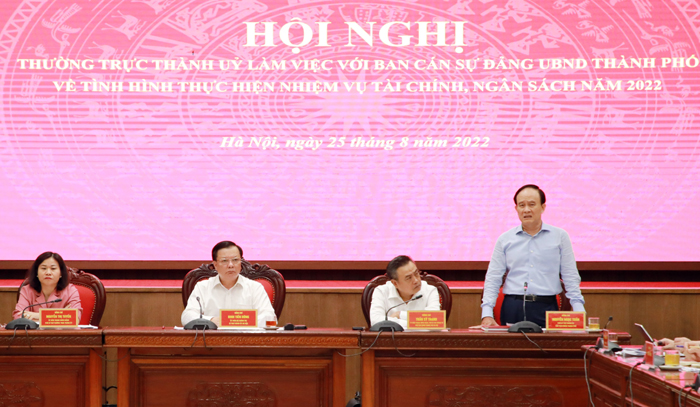 Chiều 25/8/2022, Thường trực Thành ủy Hà Nội làm việc với Ban Cán sự đảng UBND Thành phố về tình hình thực hiện nhiệm vụ tài chính, ngân sách năm 2022.