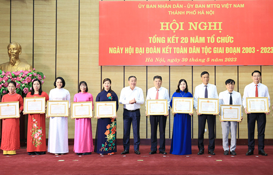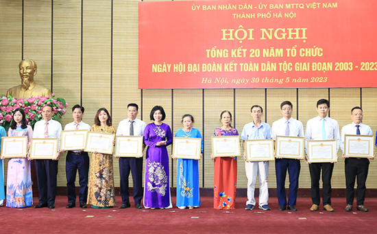 Sáng 30-5, UBND thành phố - Ủy ban Mặt trận Tổ quốc Việt Nam thành phố Hà Nội tổ chức tổng kết 20 năm tổ chức Ngày hội Đại đoàn kết toàn dân tộc giai đoạn 2003-2023.