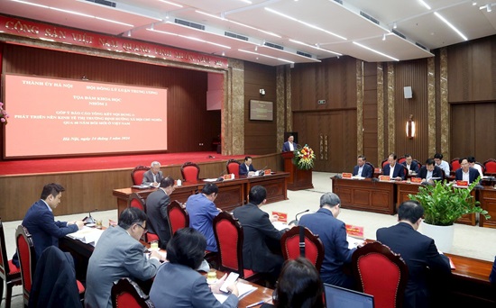 Chiều 14-3, tại trụ sở Thành ủy Hà Nội, Hội đồng Lý luận Trung ương phối hợp với Thành ủy Hà Nội tổ chức tọa đàm khoa học: "Góp ý vào Báo cáo tổng kết Nội dung 3: Phát triển nền kinh tế thị trường định hướng xã hội chủ nghĩa (XHCN) qua 40 năm đổi mới ở Việt Nam".