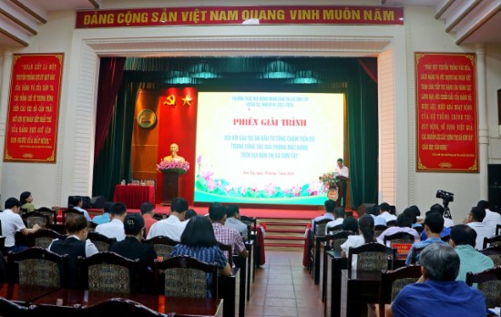 Báo cáo tại phiên giải trình cho thấy, trong thời gian qua, công tác giải phóng mặt bằng để thực hiện các dự án đầu tư công đã được Thị ủy quan tâm, ban hành nghị quyết, kế hoạch để tập trung công tác lãnh đạo, chỉ đạo, huy động hệ thống chính trị từ thị xã đến cơ sở vào cuộc, góp phần thực hiện thắng lợi các chỉ tiêu, nghị quyết mà Đại hội Đảng bộ thị xã lần thứ XXI, nhiệm kỳ 2020 – 2025 đã đề ra. Tuy nhiên, qua thực tế cho thấy, hiện trên địa bàn thị xã vẫn còn một số dự án đầu tư công chậm tiến độ do liên quan đến công tác giải phóng mặt bằng, trong đó có 5 dự án: Dự án Đầu tư cải tạo, nâng cấp tỉnh lộ 413 đoạn từ Km0+00 đến Km5+900, thị xã Sơn Tây; Dự án Đầu tư nâng cấp cải tạo tỉnh lộ 414 (đoạn từ Ngã ba Vị Thuỷ đi Xuân Khanh), thị xã Sơn Tây; Dự án Nâng cấp, cải tạo Đường tỉnh lộ 418 đoạn Km0+km3, thị xã Sơn Tây); Dự án Cải tạo, nâng cấp và phát huy giá trị Đầm Đượng (khu vực Kỳ Sơn, Lễ Khê), xã Xuân Sơn và Dự án Cải tạo nạo vét Hồ Lớn và làm đường dạo ven hồ, phường Phú Thịnh. Tổng diện tích phải thực hiện GPMB của 5 dự án là 457.585,6 m2 nằm trên địa bàn 6 xã, phường thuộc Thị xã, với khoảng 2.147 thửa đất của 1.903 hộ gia đình, cá nhân, tổ chức. Tính đến ngày 12/6/2024, đã bàn giao 118.186,5 m2 mặt bằng cho đơn vị thi công, đạt 25,8%.