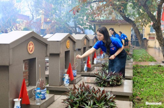 Thế hệ trẻ huyện Thanh Trì dâng hương tưởng niệm các anh hùng liệt sĩ. Ảnh: Quang Thái