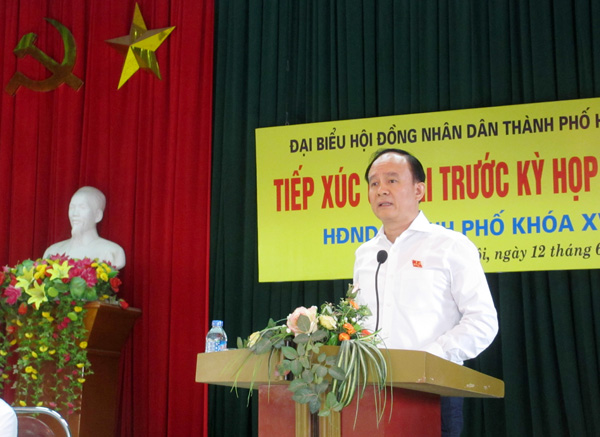 Phó Chủ tịch Thường trực HĐND Thành phố Nguyễn Ngọc Tuấn phát biểu tại buổi tiếp xúc