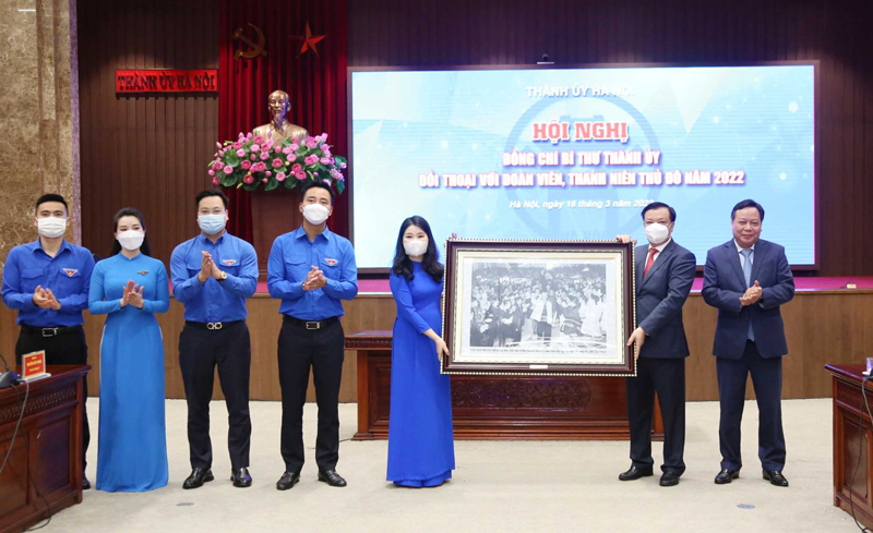Chiều 16/3, tại Trụ sở Thành ủy Hà Nội, đồng chí Đinh Tiến Dũng, Ủy viên Bộ Chính trị, Bí thư Thành ủy, Trưởng đoàn đại biểu Quốc hội thành phố Hà Nội, chủ trì đối thoại với đoàn viên, thanh niên Thủ đô.