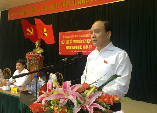 Phát biểu tại buổi tiếp xúc, Phó Chủ tịch Thường trực HĐND TP Nguyễn Ngọc Tuấn cho biết: với sự chỉ đạo sâu sát của các cấp ủy đảng, chính quyền, sự cố gắng của doanh nghiệp và toàn thể nhân dân, kinh tế xã hội năm 2017 đạt được kết quả khá toàn diện. Kinh tế tăng trưởng khá, tổng sản phẩm trên địa bàn ước tăng 8,5%; thu ngân sách vượt 1,4% dự toán; thu hút vốn đầu tư tăng cao; giá cả thị trường ổn định, lạm phát được kiểm soát. Xây dựng nông thôn mới tiếp tục được triển khai tích cực, đến hết năm 2017, Thành phố có thêm 30 xã đạt chuẩn, nâng tổng số lên 285 xã nông thôn mới, đạt tỷ lệ 73,8%.