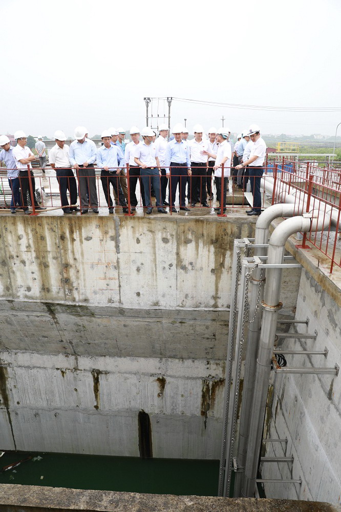 Phó Chủ tịch Thường trực HĐND Thành phố Nguyễn Ngọc Tuấn trưởng đoàn, giám sát kiểm tra nước sau khi xử lý tại Nhà máy xử lý nước thải tập trung Cầu Ngà