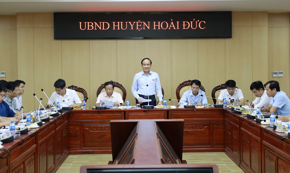 Trên cơ sở đó, Lãnh đạo huyện Hoài Đức đề nghị Lãnh đạo Thành phố chỉ đạo các sở, ngành và các chủ đầu tư đẩy nhanh tiến độ triển khai các dự án để sớm hoàn thành đưa vào sử dụng, vì thời gian triển khai dự án đã rất lâu rồi, trong khi đó, vấn đề nước thải cũng là 1 trong các chỉ tiêu để huyện Hoài Đức có thể được trở thành quận vào năm 2020; Chỉ đạo các sở, ngành phối hợp kiểm tra, rà soát, tổng hợp làm rõ những tồn tại vướng mắc của 3 dự án để sớm có giải pháp giải quyết; đồng thời cần có phương án thống nhất về phương thức vận hành, thu phí để triển khai bài bản, dân chủ, công khai, minh bạch tạo sự ủng hộ trong nhân dân khi dự án hoàn thành đưa vào sử dụng.