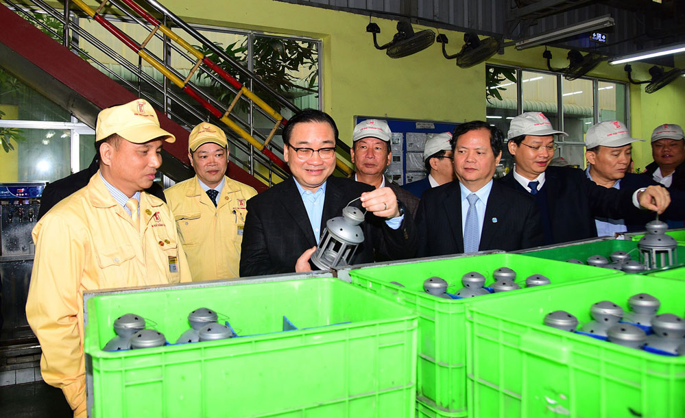 Bí thư Thành ủy Hoàng Trung Hải thăm nhà máy sản xuất của Công ty Cổ phần Kim khí Thăng Long