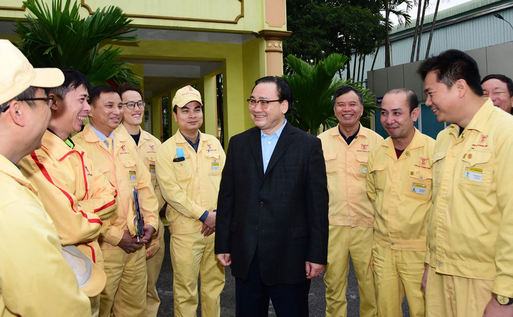 Bí thư Thành ủy Hoàng Trung Hải động viên người lao động Công ty Cổ phần Kim khí Thăng Long