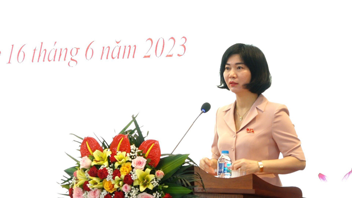 Phó Chủ tịch Thường trực HĐND thành phố Phùng Thị Hồng Hà phát biểu tại hội nghị