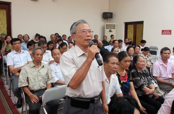 Cử tri quận Hoàng Mai phát biểu tại buổi tiếp xúc
