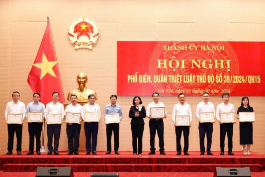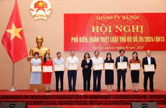 Nhân dịp này, UBND thành phố đã khen thưởng 36 tập thể, 79 cá nhân có thành tích xuất sắc trong công tác lãnh đạo, chỉ đạo, tham mưu, xây dựng, ban hành Luật Thủ đô năm 2024.