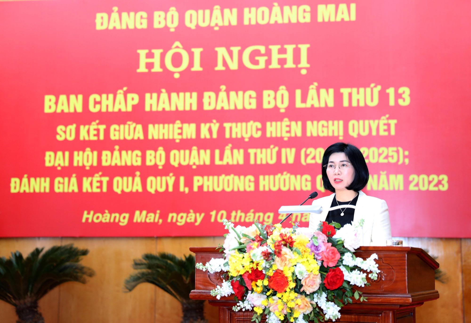 Đồng chí Phùng Thị Hồng Hà đề nghị Ban Chấp hành Đảng bộ quận Hoàng Mai tiếp tục lãnh đạo, chỉ đạo khai thác tốt hơn nữa tiềm năng, lợi thế về địa lý, giao thông, văn hóa, lịch sử..., huy động mạnh mẽ các nguồn lực để đầu tư phát triển. Duy trì tốt hơn nữa những chỉ tiêu đã vượt và đạt kế hoạch, phấn đấu đến năm 2025 Chỉ số cải cách hành chính ít nhất tăng 5 bậc; tổ chức phát động các phong trào thi đua hướng tới kỷ niệm 20 năm thành lập quận…