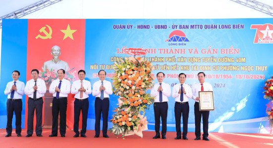Sáng 5/10/2024, quận Long Biên tổ chức khánh thành và gắn biển dự án “Xây dựng tuyến đường 40m nối từ đường Nguyễn Văn Cừ đến hết khu tái định cư Ngọc Thụy” với tổng mức đầu tư trên 1.200 tỷ đồng.