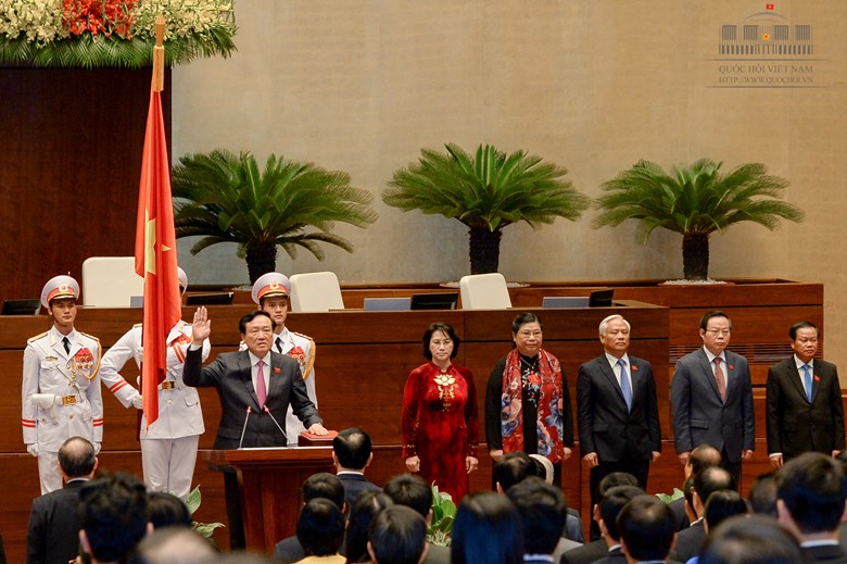 Ngay sau đó, Chánh án Tòa án nhân dân tối cao Nguyễn Hòa Bình tuyên thệ nhậm chức. Lễ tuyên thệ được tổ chức trang trọng, thiêng liêng tại Hội trường Diên Hồng, Nhà Quốc hội.