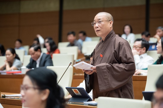 Đại biểu Hòa thượng Thích Bảo Nghiêm thảo luận tại hội trường
