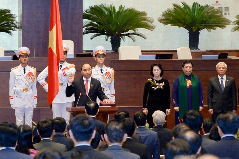 Trước Quốc hội, cử tri và đồng bào cả nước, Thủ tướng Chính phủ Nguyễn Xuân Phúc nêu rõ: “Dưới cờ đỏ sao vàng thiêng liêng của Tổ quốc, trước Quốc hội, đồng bào và cử tri cả nước, tôi- Thủ tướng Chính phủ nước Cộng hòa xã hội chủ nghĩa Việt Nam xin tuyên thệ: Tuyệt đối trung thành với Tổ quốc, với nhân dân, với Hiến pháp nước Cộng hòa xã hội chủ nghĩa Việt Nam, nỗ lực công tác tốt để hoàn thành nhiệm vụ được Đảng, Nhà nước và Nhân dân giao phó".
