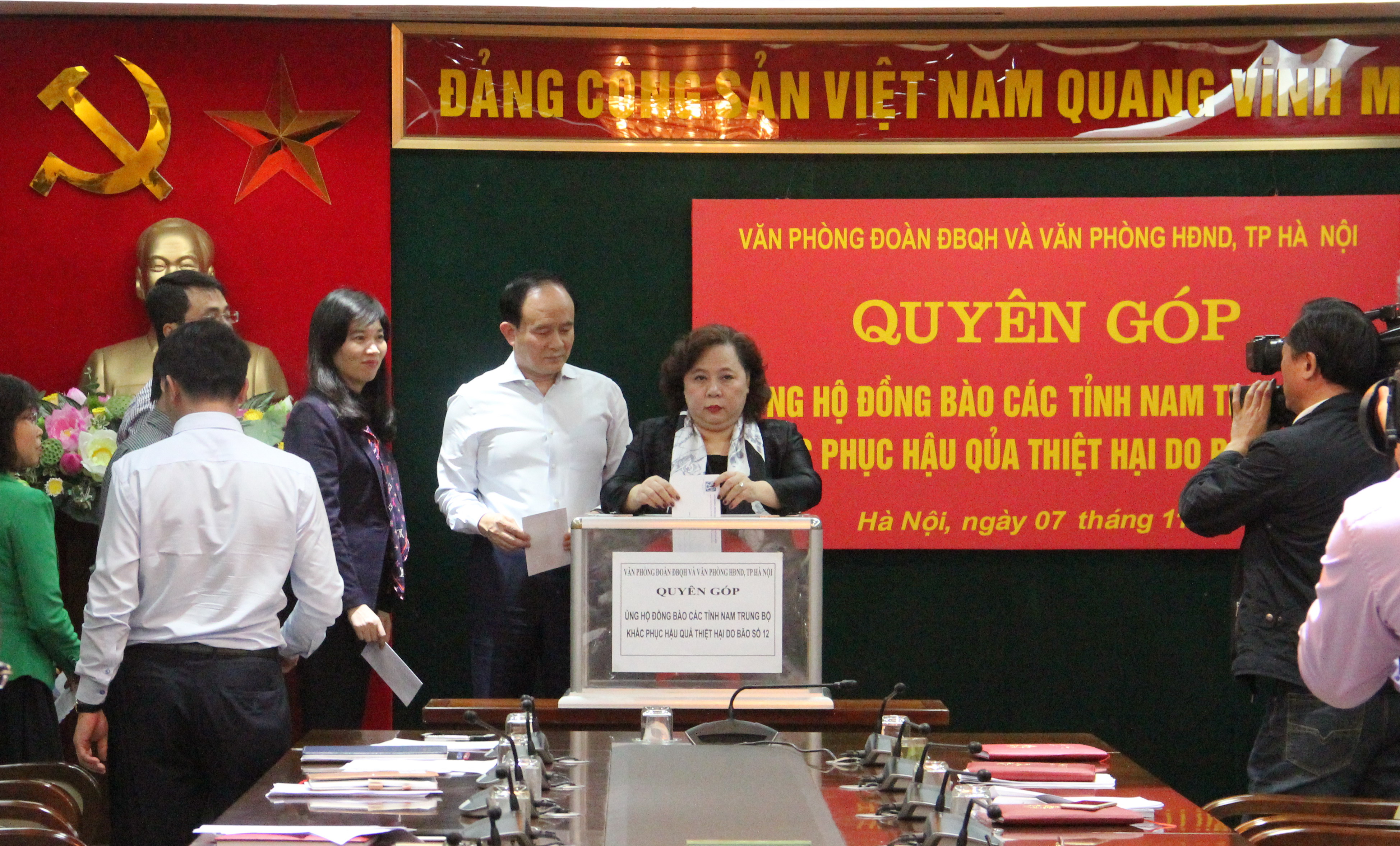 Chiều 7-11, Văn phòng Đoàn ĐBQH và Văn phòng HĐND thành phố Hà Nội đã vận động đợt quyên góp ủng hộ đồng bào các tỉnh Nam Trung bộ, Tây Nguyên khắc phục hậu quả thiệt hại do bão số 12 gây ra. Dự buổi quyên góp có: Phó Bí thư Thành uỷ, Chủ tịch HĐND thành phố Hà Nội Nguyễn Thị Bích Ngọc; Uỷ viên Ban Thường vụ Thành uỷ, Phó Chủ tịch Thường trực HĐND thành phố Nguyễn Ngọc Tuấn; Phó Chủ tịch HĐND thành phố Phùng Thị Hồng Hà.