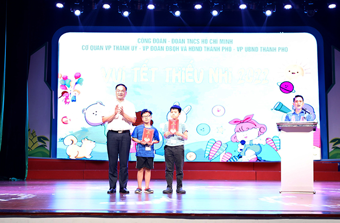 Ghi nhận những nỗ lực và chúc mừng thành tích các cháu thiếu nhi đã đạt được trong thời gian qua, Phó Chánh Văn phòng Thành ủy Nguyễn Văn Đức chúc các cháu thiếu nhi ngày càng chăm ngoan, hoc giỏi, đạt nhiều thành tích hơn nữa trong học tập, rèn luyện thể chất, tham gia nhiều các hoạt động văn hóa, văn nghệ, nâng cao kỹ năng sống.