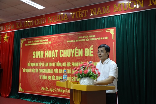 Trong thời gian qua, thực hiện Chỉ thị số 05-CT/TW của Bộ Chính trị và Kế hoạch số 03-KH/TW của Ban Bí thư về đẩy mạnh học tập và làm theo tư tưởng, đạo đức, phong cách Hồ Chí Minh; thực hiện chuyên đề năm 2019 "Xây dựng ý thức tôn trọng Nhân dân, phát huy dân chủ, chăm lo đời sống Nhân dân theo tư tưởng, đạo đức, phong cách Hồ Chí Minh", chủ đề năm của Thành phố “Nâng cao hiệu lực, hiệu quả của hệ thống chính trị”, gắn với tuyên truyền kỷ niệm 20 năm Thủ đô Hà Nội được UNESCO vinh danh “Thành phố vì hòa bình” (1999-2019), 65 năm Ngày Giải phóng Thủ đô (10/10/1954-10/10/2019). Đảng bộ cơ quan Văn phòng HĐND Thành phố, Chi bộ cơ quan Văn phòng Đoàn ĐBQH Thành phố đã tổ chức, triển khai thực hiện có hiệu quả việc học tập và làm theo tư tưởng, đạo đức, phong cách Hồ Chí Minh trong cán bộ, đảng viên, nhằm tạo động lực to lớn cho công cuộc đổi mới, góp phần đẩy mạnh xây dựng Đảng trong sạch, vững mạnh về chính trị, tư tưởng, tổ chức và đạo đức, xây dựng Nhà nước pháp quyền xã hội chủ nghĩa của dân, do dân, vì dân, củng cố hệ thống chính trị trong giai đoạn hiện nay.