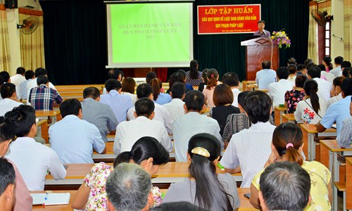 Tại lớp tập huấn, các đại biểu đã được nghe đồng chí Đỗ Minh Sơn - Nguyên Trưởng phòng Văn bản pháp quy Sở Tư pháp TP Hà Nội truyền đạt một số nội dung của Luật ban hành văn bản quy phạm pháp luật và Nghị định số 34/2016 của Chính phủ quy định chi tiết và hướng dẫn một số điều của Luật ban hành văn bản quy phạm pháp luật. Đồng chí nhấn mạnh một số nội dung về các quy định chung, tinh thần của luật; thẩm quyền ban hành, nội dung văn bản quy phạm pháp luật; xây dựng, ban hành văn bản quy phạm pháp luật của hội đồng nhân dân, ủy ban nhân dân cấp thị xã và cấp xã, phường; xây dựng, ban hành văn bản quy phạm pháp luật theo trình tự, thủ tục rút gọn; hiệu lực của văn bản quy phạm pháp luật, nguyên tắc áp dụng, công khai văn bản quy phạm pháp luật; giám sát, kiểm tra, xử lí văn bản quy phạm pháp luật; rà soát, hệ thống hóa văn bản quy phạm pháp luật.