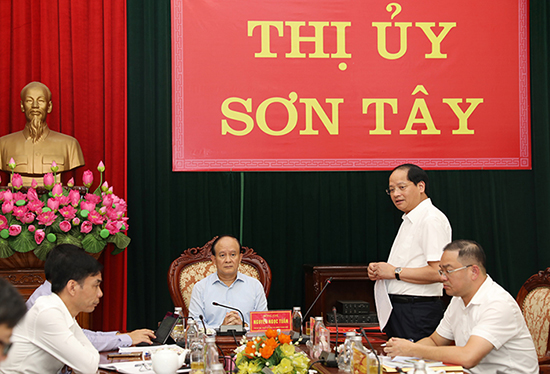 Phát biểu kết luận buổi làm việc, Phó Bí thư Thành uỷ, Chủ tịch HĐND Thành phố Nguyễn Ngọc Tuấn đánh giá, cấp uỷ, chính quyền thị xã Sơn Tây đã có nhiều cố gắng, nỗ lực trong triển khai Chương trình 06 và Nghị quyết 09 của Thành uỷ, đạt được nhiều kết quả nổi bật, đáng ghi nhận, đặc biệt là trong lĩnh vực bảo tồn, phát huy giá trị di sản, tạo sản phẩm mới trong lĩnh vực văn hoá; kết hợp với các chương trình khác như phát triển du lịch, đô thị để phát triển thị xã một cách năng động, văn minh.