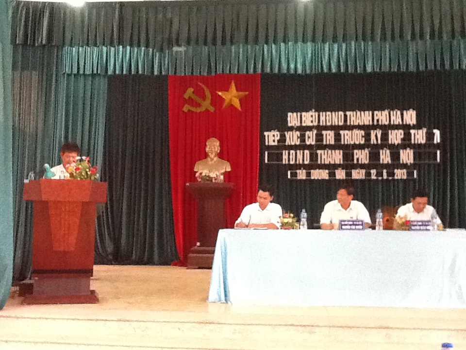 * Tại UBND xã Nguyễn Trãi, cử tri huyện Thường Tín đề nghị thành phố, huyện không nên đưa tiêu chí sinh con thứ 3 vào tiêu chí xét công nhận danh hiệu làng văn hóa vì chưa phù hợp với vùng nông thôn hiện nay; Thành phố quan tâm nhiều hơn nữa đối với giáo dục; đặc biệt, cần chăm lo đến công tác giáo dục thanh thiếu niên; đầu tư các trang thiết bị máy móc cần thiết cho các trạm y tế cơ sở; có những chính sách phù hợp để hỗ trợ đền bù đất thu hồi của dân dành cho quỹ đất xây dựng các công trình công cộng;