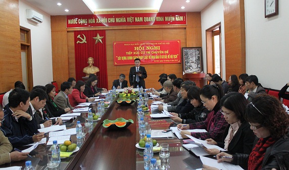 Chiều ngày 12- 4, Đoàn Đại biểu Quốc hội thành phố Hà Nội phối hợp với Ban thường trực Ủy ban Mặt trận Tổ quốc thành phố Hà Nội tiếp xúc cử tri chuyên đề “Xây dựng chính sách pháp luật về hòa giải ở cơ sở; về hộ tịch”.