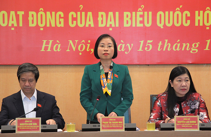 Dự hội nghị có Ủy viên Ban Thường vụ Thành ủy, Chủ tịch Ủy ban Mặt trận Tổ quốc Việt Nam thành phố Hà Nội Nguyễn Lan Hương và các đại biểu Quốc hội thành phố. Phó Trưởng đoàn chuyên trách Đoàn đại biểu Quốc hội thành phố Phạm Thị Thanh Mai chủ trì hội nghị.