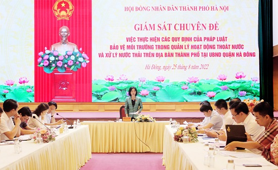 Sáng 25/8/2022, đoàn giám sát của HĐND thành phố Hà Nội đã giám sát chuyên đề về việc thực hiện các quy định pháp luật về bảo vệ môi trường trong hoạt động quản lý thoát nước và xử lý nước thải trên địa bàn quận Hà Đông.