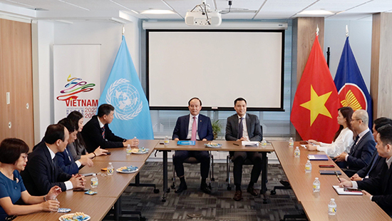 Đoàn đại biểu thành phố Hà Nội thăm, làm việc với cán bộ, công nhân viên Phái đoàn đại diện thường trực Việt Nam tại Liên hợp quốc.