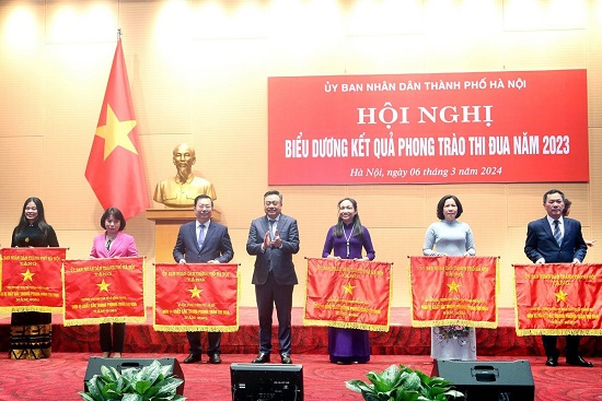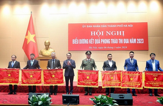 UBND thành phố Hà Nội đã tặng “Cờ đơn vị xuất sắc trong phong trào thi đua” cho 26 tập thể và Bằng khen của Chủ tịch UBND thành phố cho 83 tập thể có thành tích trong phong trào thi đua thực hiện nhiệm vụ công tác, góp phần tích cực vào sự phát triển kinh tế - xã hội của thành phố năm 2023./.