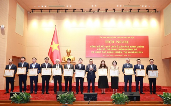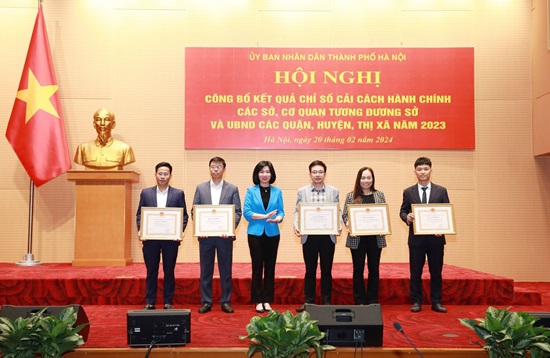 Chiều 20-2, UBND thành phố Hà Nội công bố kết quả Chỉ số cải cách hành chính các sở, cơ quan tương đương và UBND các quận, huyện, thị xã năm 2023.