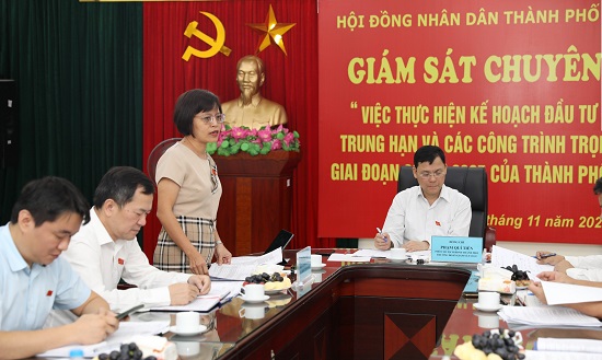 Trưởng ban Kinh tế-Ngân sách HĐND Thành phố Hồ Vân Nga phát biểu tại buổi giám sát