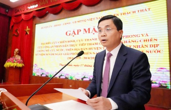 Phát biểu tại buổi gặp mặt, Bí thư Huyện ủy Thạch Thất Lê Minh Đức gửi lời tri ân sâu sắc tới các Cựu chiến binh, Cựu thanh niên xung phong, Cựu Công an nhân dân, các Bà Mẹ Việt Nam Anh hùng, thương bệnh binh, thân nhân liệt sĩ và các gia đình có công với nước. Đồng chí nhấn mạnh: chiến thắng 30/4/1975 là sự kiện trọng đại trong lịch sử dân tộc, là biểu tượng của khát vọng hòa bình, ý chí tự lực, tự cường và tinh thần đoàn kết toàn dân. Trong chiến thắng vĩ đại đó, có phần đóng góp quan trọng của quân và dân huyện Thạch Thất - những người con đã dũng cảm chiến đấu trên khắp các mặt trận và là hậu phương vững chắc chi viện sức người, sức của cho tiền tuyến.