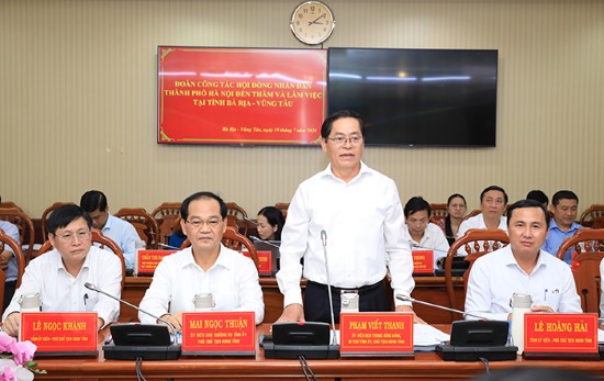 Chiều 19/7, tại trụ sở HĐND tỉnh Bà Rịa - Vũng Tàu, Thường trực HĐND thành phố Hà Nội và Thường trực HĐND tỉnh Bà Rịa - Vũng Tàu tổ chức hội nghị trao đổi kinh nghiệm về hoạt động của cơ quan dân cử. Ủy viên Trung ương Đảng, Bí thư Tỉnh ủy, Chủ tịch HĐND tỉnh Bà Rịa - Vũng Tàu Phạm Viết Thanh và Phó Bí thư Thành ủy, Chủ tịch HĐND thành phố Hà Nội, Phó Trưởng đoàn đại biểu Quốc hội thành phố Hà Nội Nguyễn Ngọc Tuấn đồng chủ trì Hội nghị.